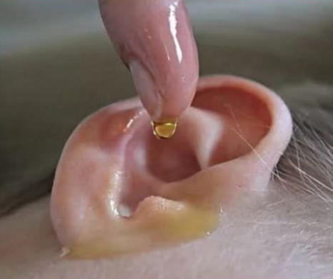 - Allongez-vous ou inclinez la tête sur le côté, l’oreille à traiter vers le haut