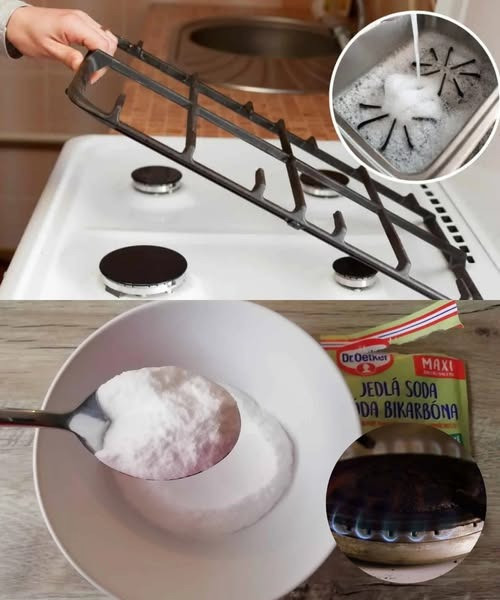 Méthode : saupoudrez du bicarbonate sur la grille humide, frottez avec une brosse douce et rincez.