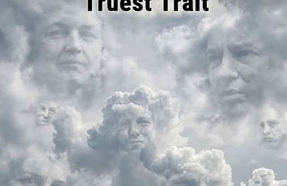 L’image présentée ici montre un ciel couvert de nuages dans lesquels se dessinent plusieurs visages humains. Certains sont immédiatement visibles : des traits marqués, des regards dirigés vers l’horizon, des expressions graves ou neutres. D’autres apparaissent plus subtilement, intégrés dans les ombres et les volumes des nuages.