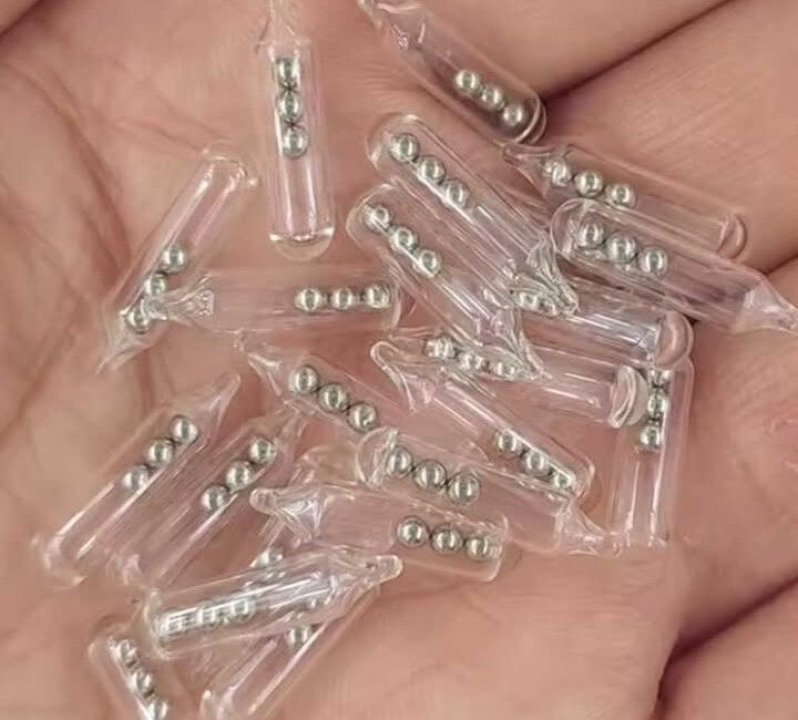Au milieu de cette attente silencieuse, certains accessoires minuscules peuvent transformer totalement la situation. Parmi eux, un objet étonnant attire l’attention de nombreux pêcheurs expérimentés : un petit tube transparent, souvent en verre ou en plastique rigide, contenant deux ou trois minuscules billes métalliques.